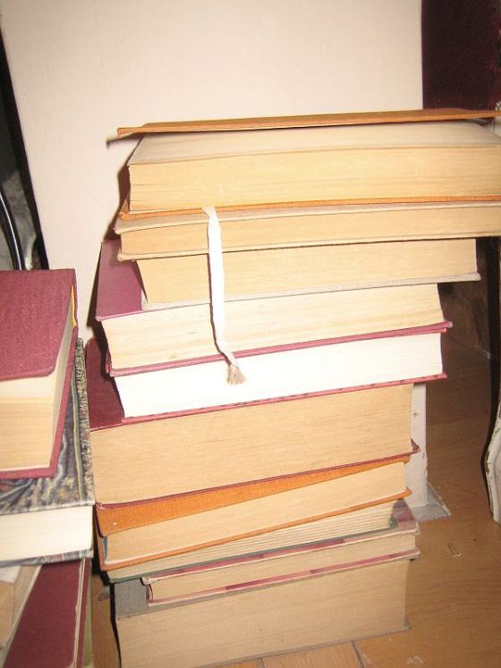 I had so many books without value on the floor in the living room, so I decided to make some use of them, creating a decorative garland for our front door!