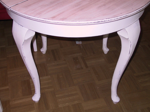 With just a white acrylic base, a little sandpaper and some color additive, you can transform a simple table in a special piece of furniture, in Shabby Chic style.